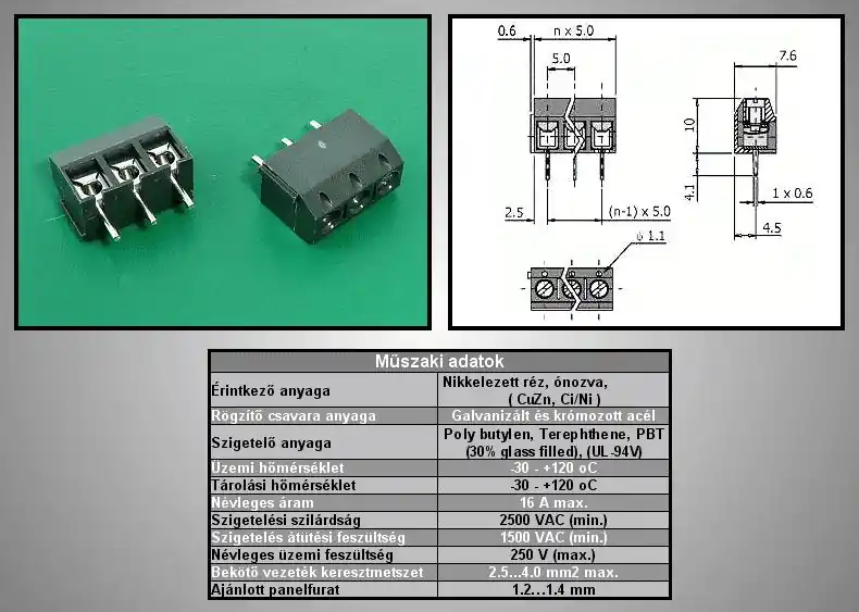 3 Pólusú sorkapocs 5mm nyákos (fekete, sorolható) TB-003/5 Autentikus mennyiség