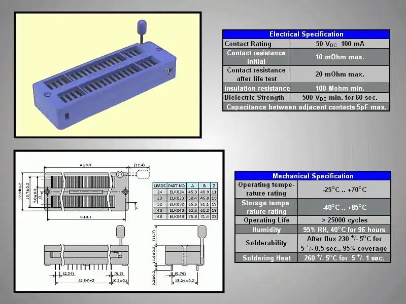 40p. DIP TEXTOOL IC foglalat Uni. IC-SWE 40P-UNI Népszerű mennyiség