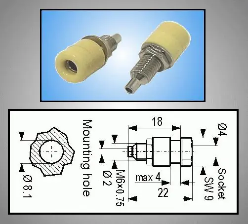 4mm banánhüvely sárga 60V 16A CSAT-B116/Y Újdonság