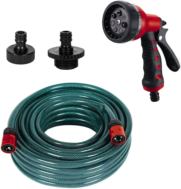 Szivattyútartozékok 4 részes tartozékkészlet a felszíni szivattyúk nyomóoldalához20 m-es kerti tömlővel tömlőcsatlakozásokkalPraktikus kerti kézizuhany különböző üzemmódokkalTömlőadapter 33,3 mm-es (1″) külső menetes szivattyúkhoz a kerti tömlő egyszerű csatlakoztatásáhozTömlőadapter szivattyúkhoz 33,3 mm (1″) belső menettel a kerti tömlő egyszerű csatlakoztatásához