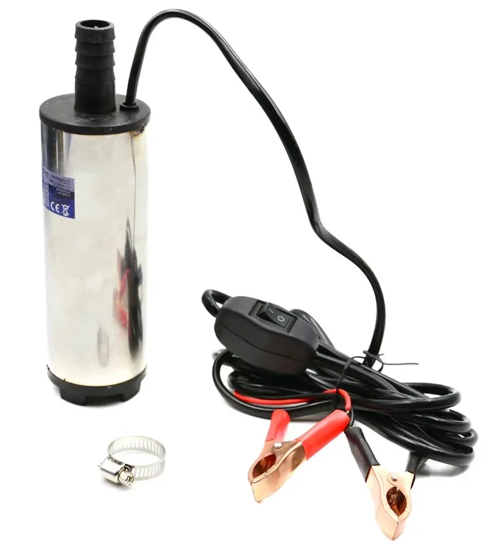 A 24V-os merülő szivattyú gyors dízel-utántöltéshez, vízhez és vékony olajokhoz használható.Nem használható benzin, alkohol, biodízel, dízel helyettesítõ vagy bármely más gyúlékony folyadék / üzemanyaggal.Tápfeszültség 24V DCAlkalmas dízel, olaj és víz számáraBe / ki kapcsoló + 2x alligátor klipek19 mm-es tömlőcsatlakozás