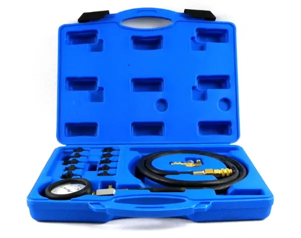 Nyomásmérő 0-10 BAR tartományban rugalmas tömlővel L = 1200 mm10 db. mérőadapterekKönyök adapter gyorscsatlakozóval
