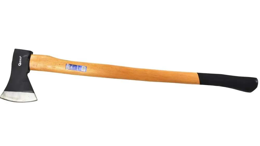 A fejsze magas széntartalmú acélból készült, megfelelően edzett és edzett, hogy növelje a penge plaszticitását.Profilozott fa fogantyúkönnyen élezhetőgumi penge védelem