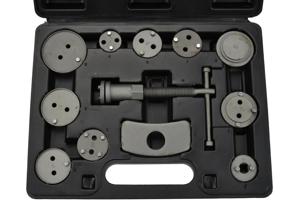 A 12 darabos Geko féknyereg visszanyomó készlet minden autószerelő műhelyben fontos kellék, hiszen használata elengedhetetlen a tárcsafékes járművek precíz javításakor. A lengyel gyártású Geko féknyereg visszanyomó készlet 12 darabos, magas minőségű anyagokból készült szettje, lehetővé teszi, hogy pontos javítást vigyél véghez autódon, ami a biztonságos járműhasználat és közlekedés alapja, ezért a Te szervizedben is elengedhetetlen. A Geko féknyereg visszanyomó készlettel megoldhatod az adapter és a dugattyú rögzítését, valamint a dugattyú behelyezését a hengerbe, és minden olyan fontos lépést véghezvihetsz, ami a féknyereg visszanyomását szolgálja. Vagyis megfelelően javítható vele a legtöbb autó. Ez biztosítja, hogy még sokáig élvezhesd a kocsid nyújtotta kényelmet, biztonságot és balesetmentes vezetést.Webáruházunkban a Geko féknyereg visszanyomó készleten kívül is sokféle autószereléshez szükséges terméket találsz, amelyek természetesen kizárólag ellenőrzött gyártóktól származnak, minőségi alapanyagokból készültek és megfelelnek a biztonsági előírásoknak.Ám komolyabb probléma, javítás esetén az autó szerelését csakis szakember által javasoljuk, mert például a piacon rendkívül népszerű, könnyű használatot és tartós megoldást nyújtó Geko féknyereg visszanyomó készlet is minden kiválósága és megbízhatósága ellenére pusztán egy eszköz, a korszerű autószereléshez pedig szaktudás kell.A legtöbb európai és ázsiai gyártású személyautóhoz használható 12 részes féknyereg visszanyomó készletAudi, VW, Isuzu, Ford, Mazda, BMW, Mercedes, Mitsubishi, Nissan, Toyota, Renault, Peugeot, Subaru, Volvo, Citroen, Saab…Praktikus, zárható műanyag kofferben szállítjuk
