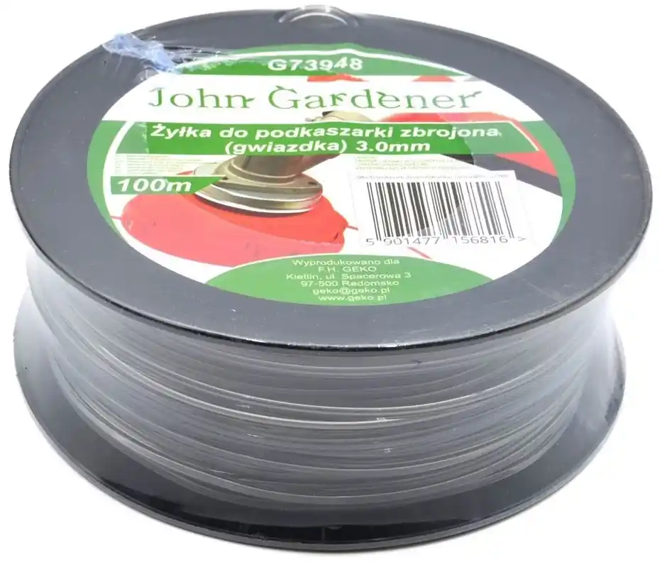 Geko John Gardener fűnyíró damil Fűkaszákhoz, szegélynyírókhozRendkívül tartós nylonból készült.A belső fűnyíró damilt egy külső műanyag réteg borítja.A csillag alakú damilok a legélesebb vágószálak, miközben viszonylat tartósak is.Ideális erős gyomokhoz, sűrű fűhöz.