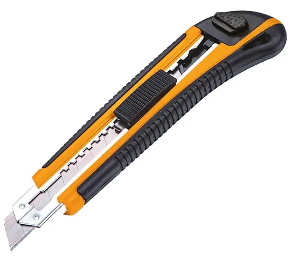 Hoteche tapétavágó kés A tapétavágó kés az építőiparban és a lakberendezési munkáknál használt kiváló minőségű eszköz.Az ergonomikus kialakításnak köszönhetően a vágókés kényelmesen használható és könnyen irányítható, így kiválóan alkalmas a hosszabb pontos vágási munkákhoz is.ABS tok, csúszásmentes TPR markolattal, fém sínnel.Automatikus zárás.Élletörő a tok végén. 3 db pótpenge mellékelve.