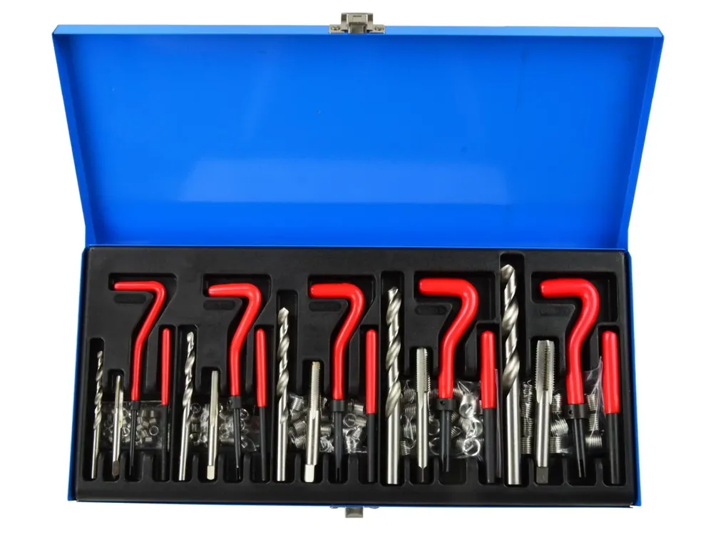 Menetjavító készlet Geko G02790, M5-M12, 131 db, HSSM5, M6, M8, M10, M12 javításra szolgáló szettHSS acél anyagMéretek M5 x 0.8 x 6.7 mmM6 x 1.0 x 8.0 mmM8 x 1.25 x 10.8 mmM10 x 1.5 x 13.5 mmM12 x 1.75 x 16.3 mm
