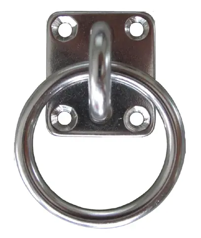 Talpas kötélkarika Kötelek, láncok, drótkötelek ellenálló, stabil rögzítésére alkalmas egy fix kapcsolódási ponthoz.A kötélkarika talpas részét felülethez lehet csavarozni/szögelni.Rozsdamentes acélból készült.Előrecsomagolt termék, mely könnyen illeszthető eladófalas, állványos, önkiszolgáló értékesítési rendszerekbe.