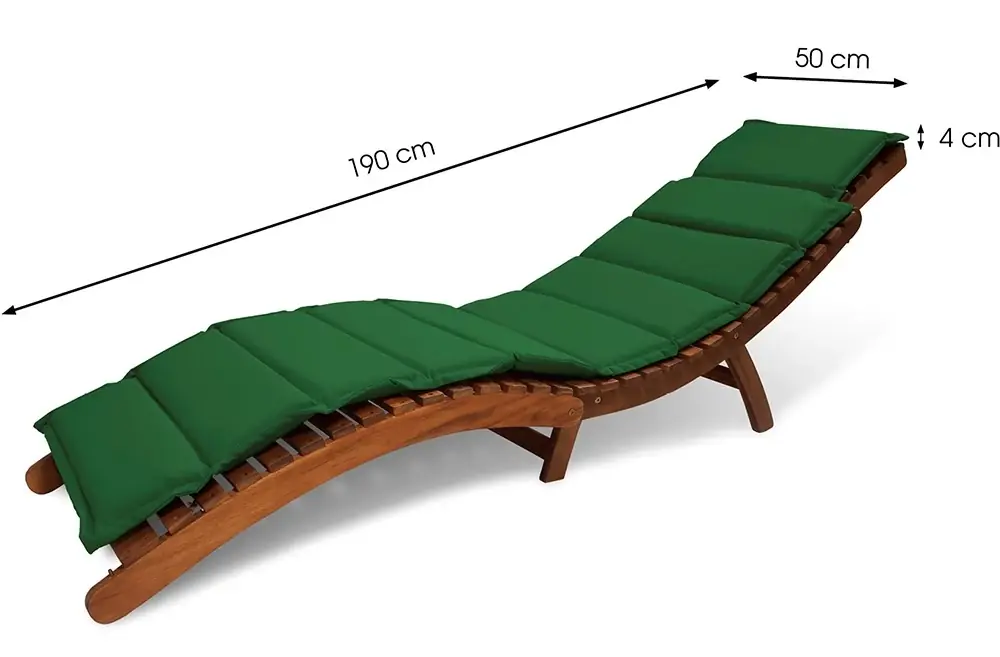 100% poliészterből készült vízálló huzatok.Méretek: hosszúság 187 cm, szélesség 52 cm, vastagság 5 cm.Szín: zöld.Kültéri használatra készült.Az FDZN 4009 nyugágyhoz való.