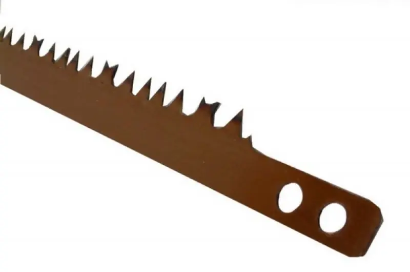 Hagyományos fűrészlap keretes fűrészhez, fa, deszka és tűzifa vágására. Szabvány méretű, bármely gyártó által készített keretes fűrészhez alkalmas. A fűrészlap két végén van két furat melynek segítségével a fűrész