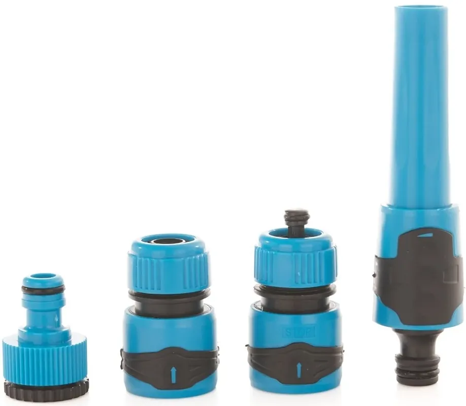 Geko Blue Line 4 részes locsolókészlet Akár növényei öntözésére használja, akár ház körüli felületeket akar megtisztítani, ez a készlet ideális választás.Tartós TPR műanyagból készültek, amely garantálja a tartósságot.Könnyen használható és telepíthető eszközök. Az 1/2″-os méret ideális házikertbe, teraszra vagy nagyobb zöldfelületek gondozására.A vízáramlás pontos szabályozásával takarékosan dolgozhat, illetve alkalmazkodni tud az aktuális munka vízigényéhez.A készlet tartalma:Csaptelep csatlakozó: gyors és fix csatlakozási lehetőség csaptelepekhez.Gyorscsatlakozó: Tökéletes megoldás, amely lehetővé teszi a locsolótömlő gyors és egyszerű csatlakoztatását és leválasztását.Gyorscsatlakozó, stoppos: Nagyon praktikus, lehetővé teszi, hogy gyorsan váltson egyik eszközről a másikra anélkül, hogy meg kellene állítania a víz áramlását.Locsolófej: Széles skálán állítható vízáram beállítási lehetőséggel rendelkezik a ködpermettől a koncentrált vízsugárig.