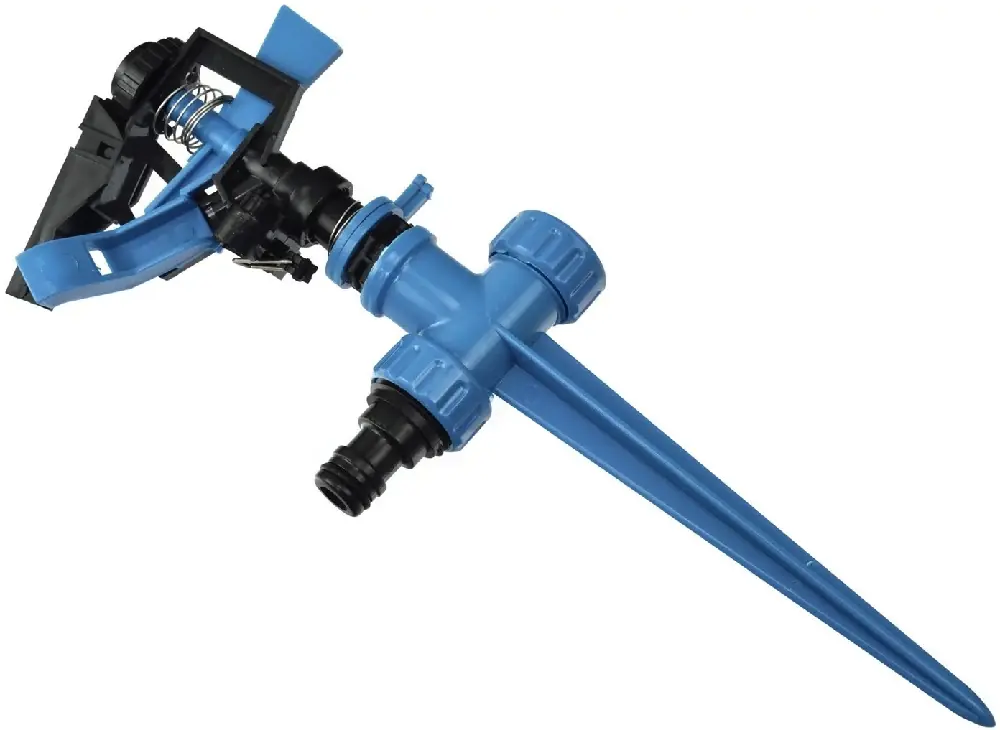 Geko Blue Line szórófej leszúró tüskével Robusztus impulzusos kerti szórófej. UV-álló műanyagból készült, a permetezés átmérője max. 24 méter a vízsugár nyomásától függően. A szórófej adapterrel van felszerelve, amely lehetővé teszi a tömlő gyors és egyszerű csatlakoztatását gyorscsatlakozóval.Az öntözőfelület 30 és 360° között állítható két gyűrűvel. Csendes működés, hatékony öntözés. A vízáram szabályozható a ködpermettől a koncentrált vízsugárig.