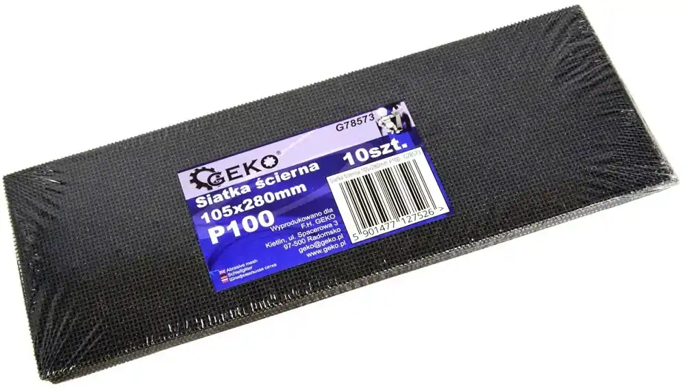 Geko csiszolóháló A 10 darabos készlet pótolhatatlan eszköz a belsőépítészettel foglalkozók számára. Alkalmas felületek festésre, tapétázásra való előkészítésre. A csiszolóháló ideális vakolat, gipszkarton felületkezelésére. Mindkét oldala használható.Kézi csiszolóval való használatra. Szilícium-karbid bevonatú háló.A P100 szemcseméret biztosítja a vakolat sima és egyenletes felületkezelését.