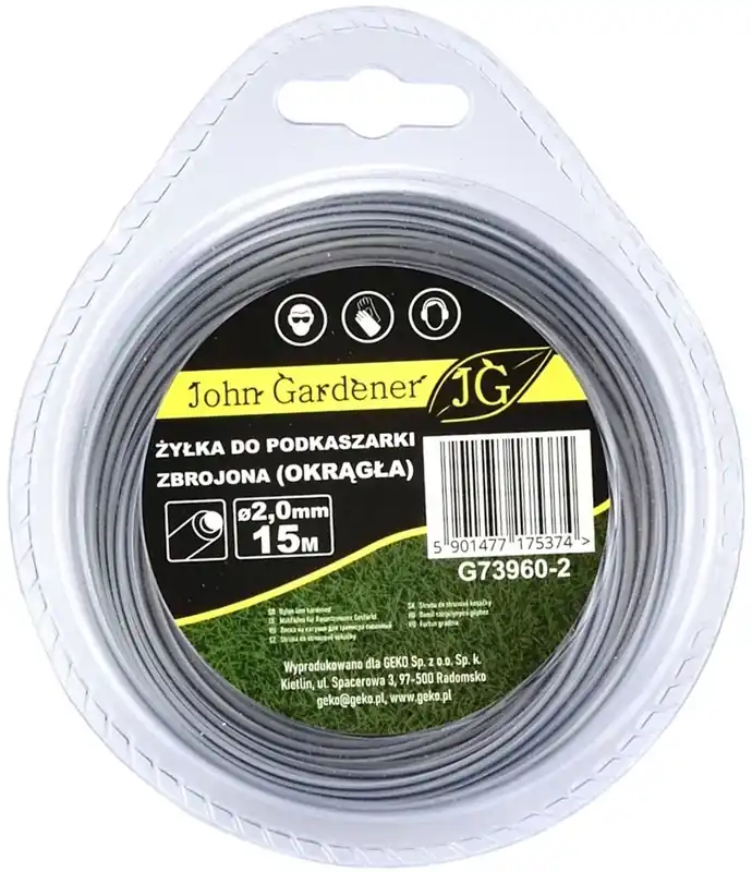 Geko John Gardener fűnyíró damil Fűkaszákhoz, szegélynyírókhozRendkívül tartós nylonból készült.A belső fűnyíró damilt egy külső műanyag réteg borítja.A kör alakú damilokat nagyobb szilárdság és lassabb kopás, ugyanakkor kevésbé hatékony vágási teljesítmény jellemzi.Ideális enyhe gyommentesítéshez, gyepszegélyekhez.