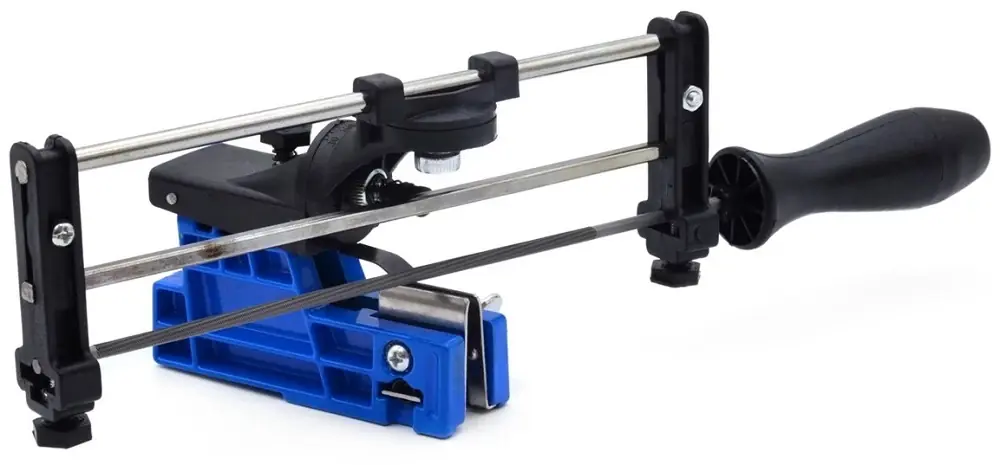 Geko kézi láncfűrész lánc élező Kézi láncélező benzines és elektromos láncfűrészek láncainak élezéséhez.A készülék lehetővé teszi a lánc precíz élezését a megfelelően kiválasztott élezési szögben. Az élező közvetlenül a vezetőre van felszerelve, nincs szükség a lánc eltávolítására. Tökéletes megoldás szakembere számára terepi munka során.Használat előtt válassza ki a megfelelő reszelőt a lánchoz, majd szerelje fel az élezőt közvetlenül a vezetőre és állítsa be a megfelelő élezési szöget.Jól látható skála az élezési szög beállításához.