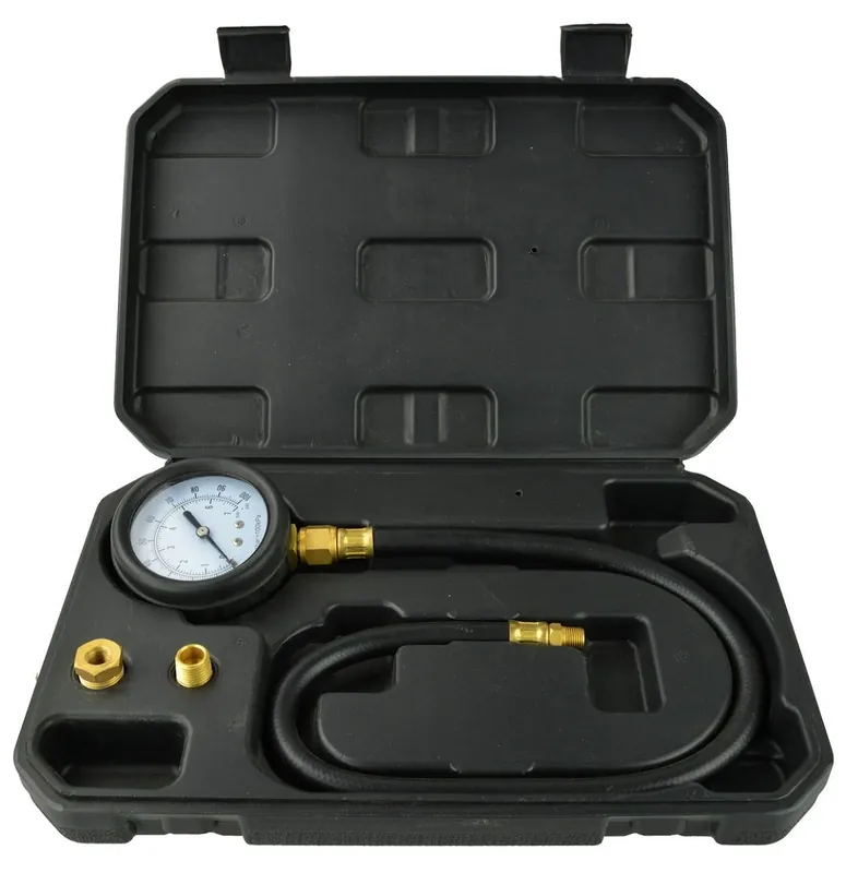 Fémházas olajnyomás mérő 0 – 7 bar közötti méréshatárral, adapterekkel együtt (1/8″ 1/4″ 3/8″ menetméretekkel)