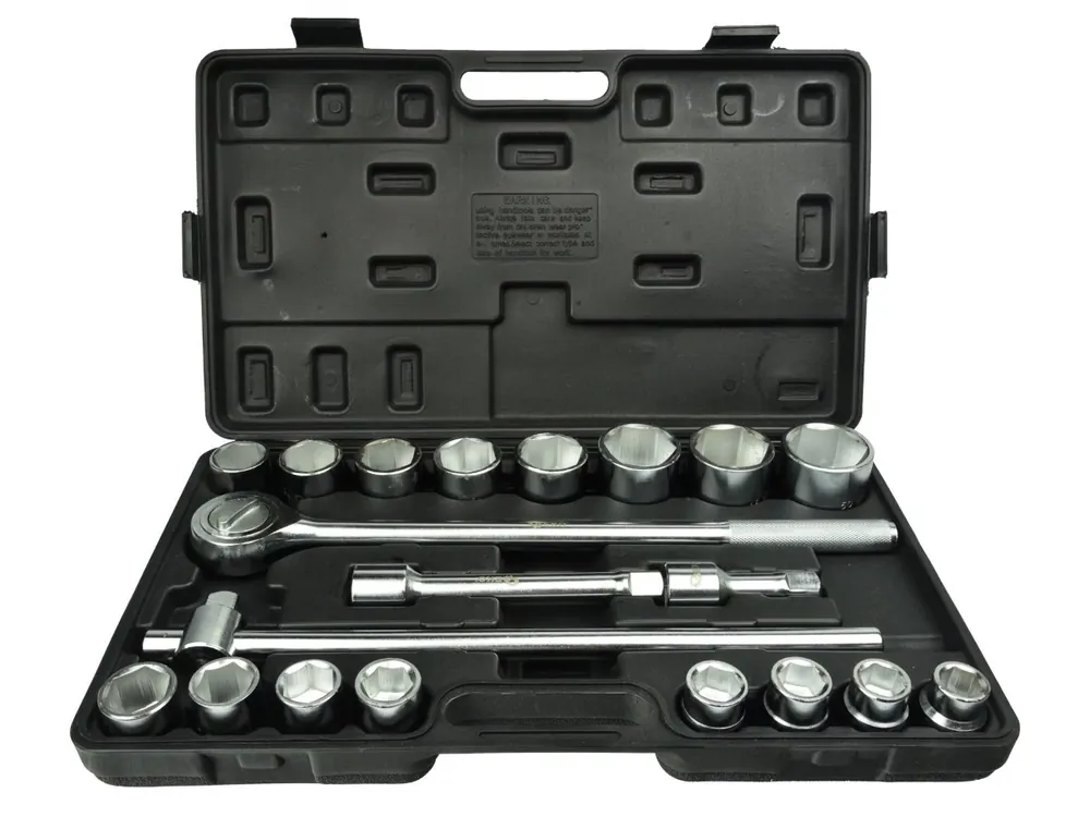 Geko dugókulcs készlet 21 darabos dugókulcs készlet 19-50 mm közötti mérettartományban.Alkalmas nagy méretű csavarok szereléséhez főként kamionoknál, teherautóknál, buszoknál kizárólag kézi szereléshez.Racsnis hajtókar recézett, csúszásmentes markolattal.43 fogas racsnis mechanizmusKróm-vanádium acélból készült, polírozott felület, maximális védelem a korrózióval szemben.A készlet tartalma: