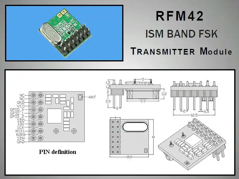 RFM42B-868-D Miniatűr RF adó +20dBm 868MHz DIP