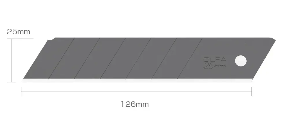 25mm-es keskenyebb élszögű edzett tördelhető penge.A következő standard késekhez alkalmazható: H-1, XH-1 és XH-AL.