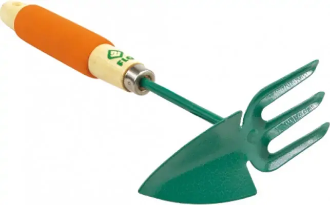 Acél kapa – 80 mm munkaszélességű kagyló kerti karmokkal. Fából készült fogantyúval ellátott rövid fogantyúra készlet. Takarítási és kertészeti munkákra szánt, pl. talajlazításhoz, omladozóhoz, mélyedésekhez, gyomláláshoz, levegőztetéshez és a sűrűn növekvő növények gondozásához.