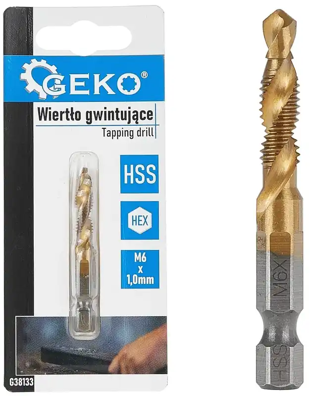 A Geko M6 x 1.0mm-es menetfúró praktikus megoldás, amely egyesíti a fúrás és a menetvágás funkcióját. HEX-szárának köszönhetően gyorsan befogható bármely szabványos tokmányba, így nincs szükség szerszámcserére. Kifejezetten fémekhez, alumíniumhoz, műanyaghoz és öntvényekhez ajánlott. Főbb jellemzők:Menetméret: M6 x 1.0mmAnyaga: HSS (gyorsacél)Szár: 1/4″ HEX – kompatibilis bitekkel és vágórudakkal Felhasználás:Fém alkatrészeknél előfúrás + menetvágás egy lépésbenKönnyű szerelési munkák, gépjárművek, szerkezeti elemek javításaAlkalmas műanyag és lágy fémek menetvágására is (kíméletes anyagokhoz)