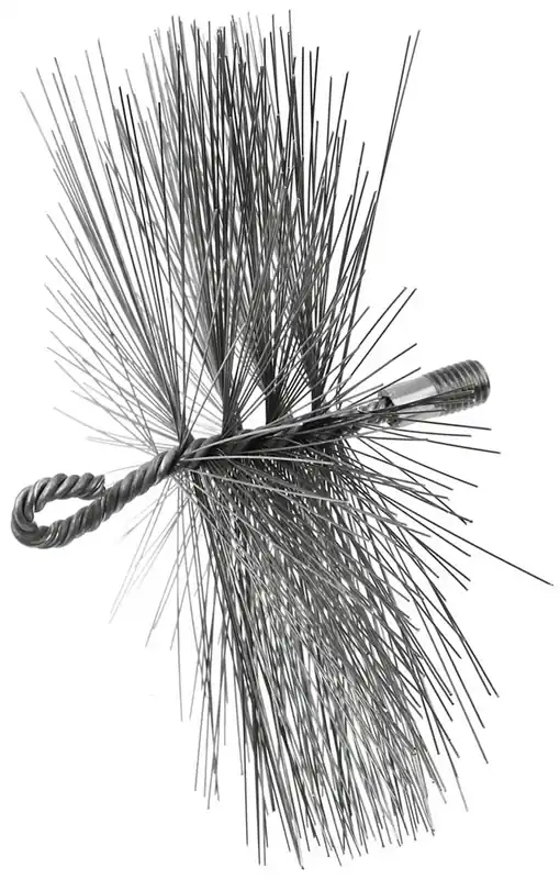 Geko kéménytisztító drótkefe Ez a kéménykefefej ideális eszköz a kerámia kémények hatékony tisztításához a koromtól és egyéb lerakódásoktól.A sörték kiváló minőségű acélból készülnek, amely még gyakori használat mellett is nagy ellenállást biztosít.A felhasznált fém drót korrózióálló és tartós. A szálak sűrűn és egyenletesen helyezkednek el, ezzel biztosítva a hatékony tisztítási folyamatot. Az alsó oldalon a kefe M12-es menettel rendelkezik nyél vagy súly felcsavarásához, míg a felső oldalon van egy fűzőlyuk a karabinerhez vagy egy drótkötél kampóhoz való rögzítéshez.Ez az acélkefe nélkülözhetetlen segítség a professzionális kéményseprőknek és azoknak a felhasználóknak, akiknek megbízható szerszámra van szükségük a kéményrendszerek karbantartásához.
