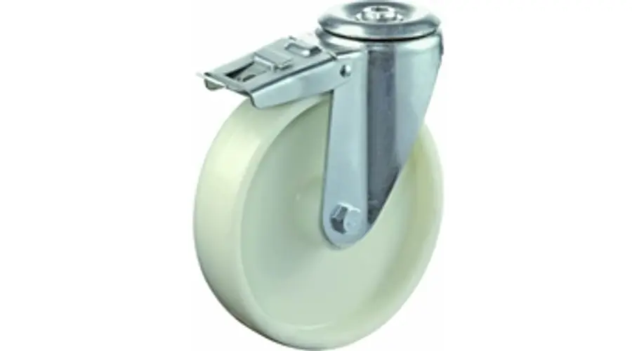 Kiváló minőség Hátfuratos kerék 100 L121.B10.100 forgó fékes villa fehér terhelhető: 125kg (BS)