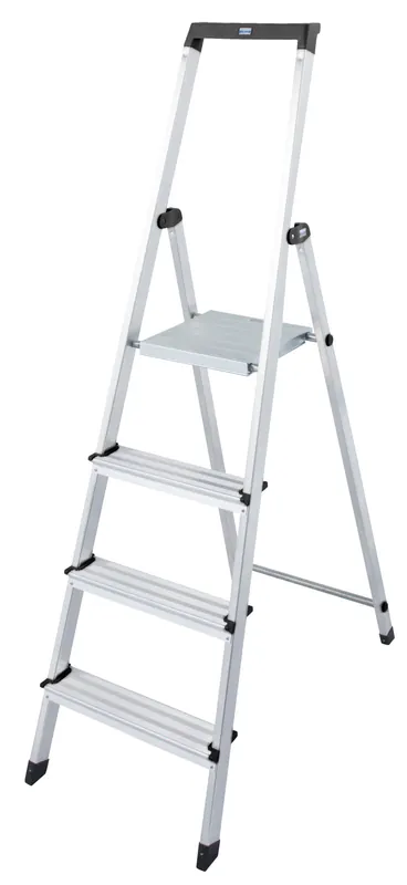JELLEMZŐK:-Biztonsági kapaszkodókeret kis tárolófelülettel és integrált vödörtartóval-Robusztus, biztonságos acél dobogó-Szárat körülvevő biztonsági csuklórendszer (4CS)-6 helyen szegecselt, robusztus kapcsolat a fokok és a szár között, amely nagyfokú stabilitást kölcsönözTECHNIKAI SPECIFIKÁCIÓK:Magasság0.85 mMunkamagasság2.85 mFokok száma4AnyagaalumíniumTömeg2,9 kgMéret (sz x m x h)0,45 x 0,11 x 1,60 m