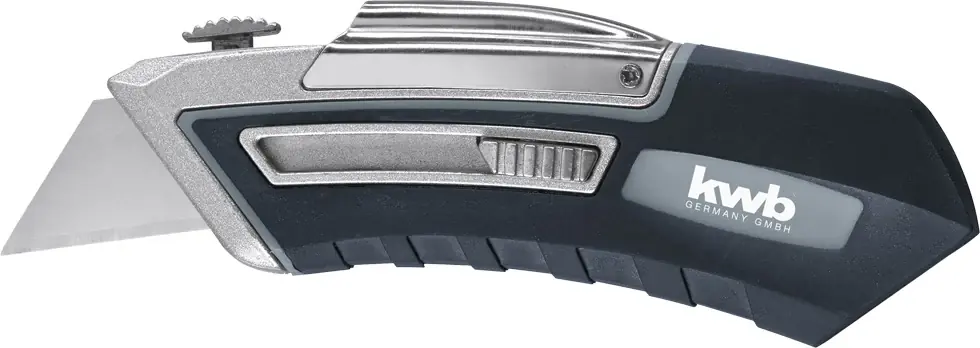 KWB PROFI fémházas trapéz pengés kés csúszásmentes borítással övre csíptethető tokkal 115/145 mm