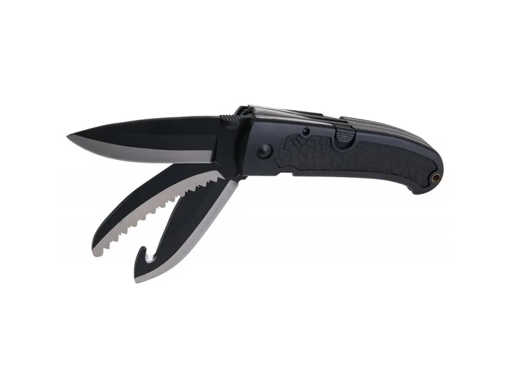 Többfunkciós kés 3 különböző résszel a különböző felhasználási módokhoz. A fogantyú műanyag és gumi kombinációja.
