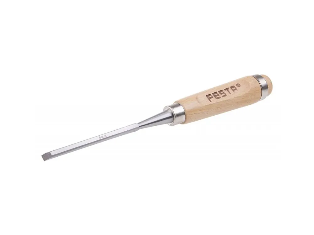 Festa 6mm/275mm véső ergonomikus bükkfa nyéllel, feltűnő felülettel fémgyűrűvelA penge teljes hosszában edzett CrV acélból van kovácsolva