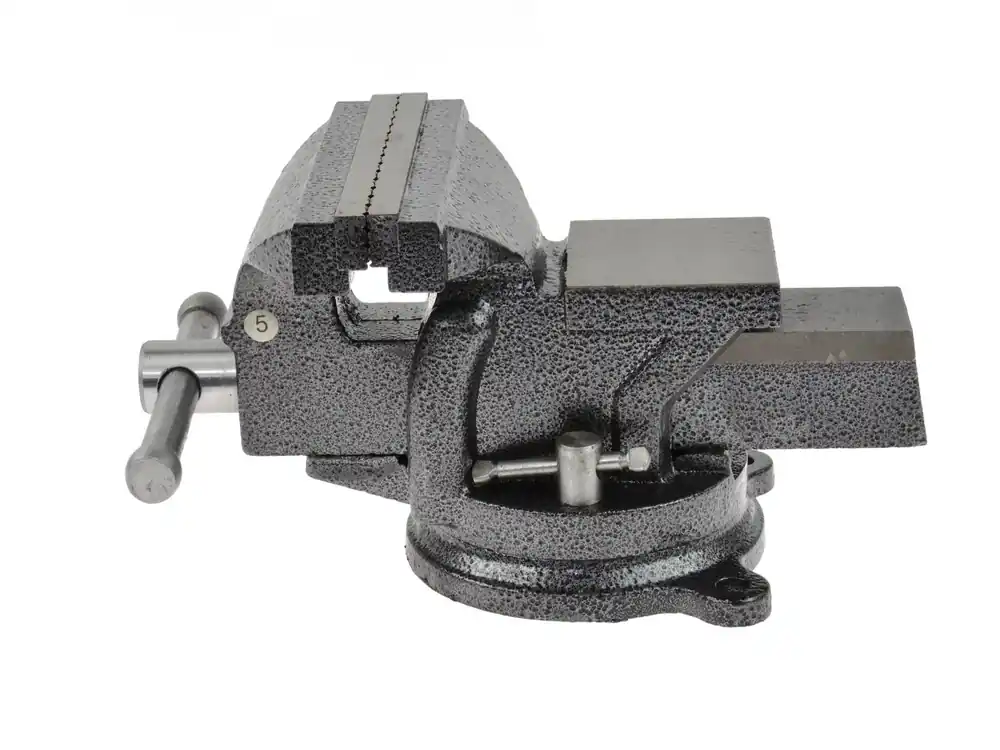 Kiváló minőségű anyagokból készült forgólakatos satu. Acél satupofák csúszásgátló keresztmetszéssel, kiegészítve edzett. A tartós és masszív felépítés lehetővé teszi a kiválasztott elem biztonságos rögzítését egy satuba, és garantálja a hosszú élettartamot.kiváló minőségű anyagokból készültcsúszásgátló acélpofák keresztmetszetteltartós és szilárd szerkezeta satu 360°-ban elforgatható