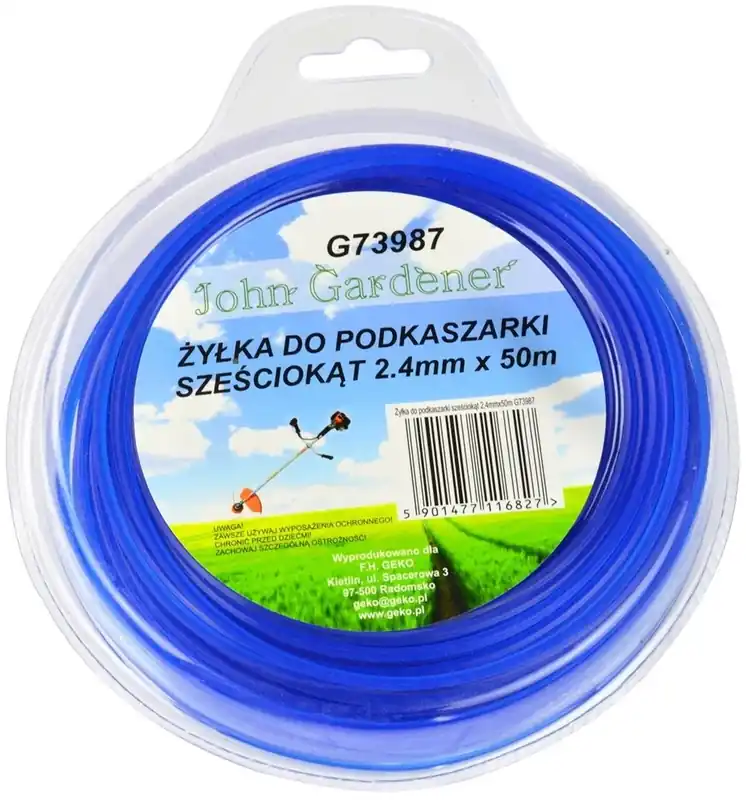Geko John Gardener fűnyíró damil Benzinmotoros és elektromos fűkaszákhoz, szegélynyírókhozRendkívül tartós nylonból készült, magas kopásállóság és szakadásállóság jellemzi.Az hatszögletű damilok nagyobb vágási teljesítményt nyújtanak, mint a hagyományos kerek damilok.Ideális erős gyomokhoz, sűrű fűhöz.