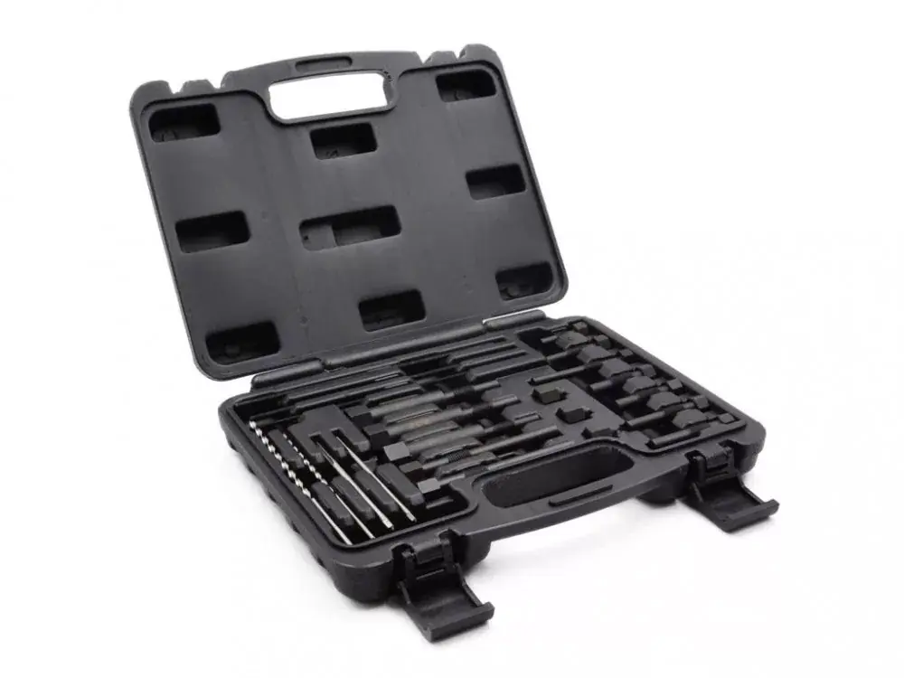A készlet lehetővé teszi az M8x1.0, M10x1.0 és M10x1.25 menetes törött izzítógyertyák eltávolítását.A készlet tartalma:2 csap megfogóval M4x0,7, hossza 180 mm1 csap megfogóval M3x0,5, hossza 180 mmHSS fúró 2,5 x 120 mm és HSS 3,3 mm x 140 mmcsap M3x0,5, hossza 100 mmcsap M4x0,7, hossza 100 mmvezető gyertyaszálhoz M8x1.0 – M10x1.0 – M10x1.25