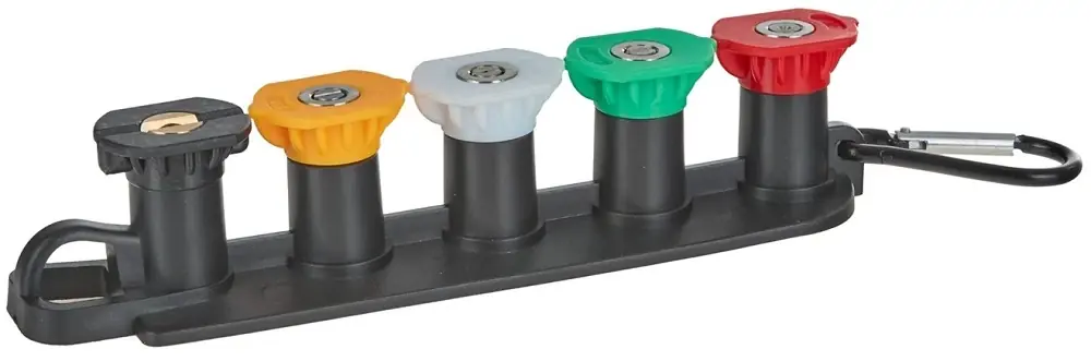 Geko magasnyomású mosó fúvóka készlet Az 5 részes készlet magasnyomású mosókhoz egy átfogó, sokoldalú készlet különféle tisztítási feladatokhozMinden fúvóka eltérő szórási szöggel rendelkezik, amely többféle tisztítási folyamatot tesz lehetővé.Piros (0°): Ideális nehezen elérhető területek és rések tisztítására, ahol a permet kis felületre történő pontos fókuszálása szükséges.Narancssárga (15°): Olyan felületek tisztítására tervezték, mint a tégla, beton vagy térkövek, ahol nagyobb területről van szükség a szennyeződés hatékony eltávolítására.Zöld (25°): Fa és festett felületek tisztítására alkalmas, hatékony de gyengéd szennyeződés eltávolítást biztosít a felület károsodása nélkül.Fehér (40°): Kifejezetten üvegek és ablakok tisztítására készült. Egyenletes és hatékony permetezést nyújt a kényes felületek károsodásának veszélye nélkül.Fekete (60°): Nagy nyílással rendelkezik, amely tökélete a hab tartályból történő felhordásához, megkönnyítve a mosási folyamatot.