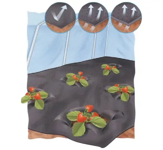 Eperfólia 1.2x10mPolietilénből (LDPE) készült, micro-perforált (vízátengedő) talajtakaró fólia. Ellenáll a Uv-sugárzásnak. A speciális talajtakaró szabályozza a talaj hőmérsékletét, valamint megőrzi annak nedvességet. A termést megvédi a szennyeződéstől és megakadályozza a talajban található gombáktól származó fertőzéseket. A fólia növeli és tisztán tartja a terméshozamot. Kialakítása véget megvédi a növényeket és a talajt az eróziótól. Megszünteti a gyomosodást, erre szükség is van, mert a gyom elveszi a tápforrást a terméstől. A talajfólia előperforálva van, kialakítása ideális tőke távolságú az eper palánták számára, valamint jól alkalmazható alacsony méretű növénykultúrához. Az eperfólia színe fekete. Két soron lyukasztott. Egymástól 30 cm tőketávolságra – 66 db lyuk