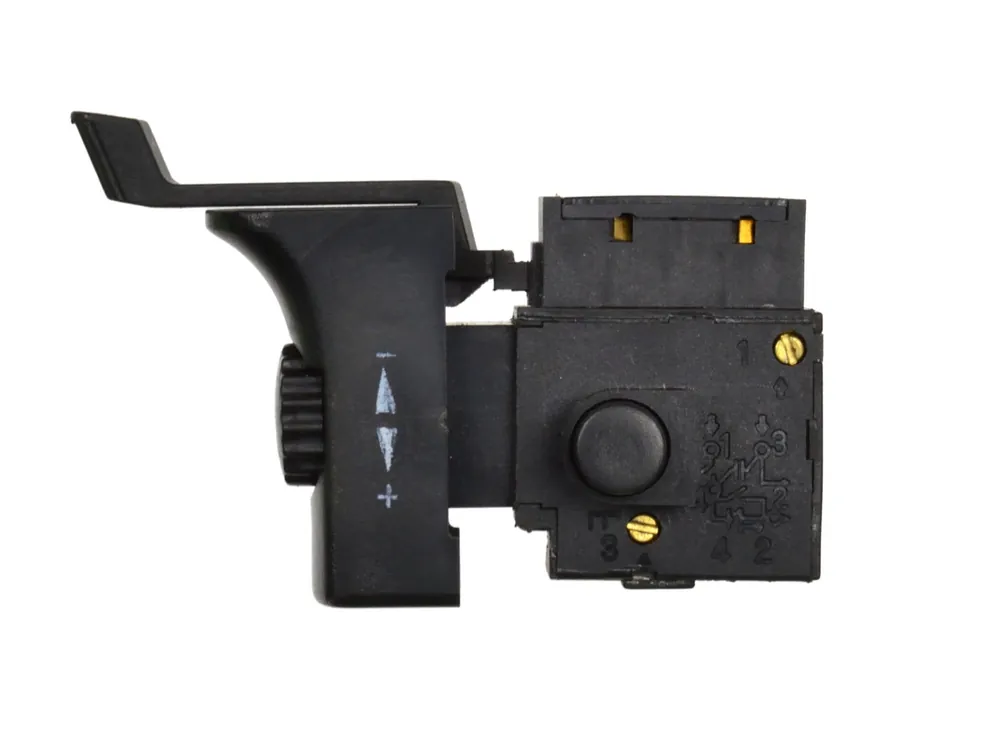 Nyomógombos kapcsoló fordulatszám-szabályozással, balra/jobbra forgásirányváltással és kapcsolóreteszeléssel a tartósan bekapcsolt állásban.Állandóan bekapcsolt állásban a forgási sebesség a főgombon lévő gomb beállításától függ. Gombmodul elektromos csatlakozók: 2x csavaros csatlakozók + 2x gyorscsatlakozókElektromos csatlakozások a forgásirány kapcsolóhoz : 4x gyorscsatlakozók