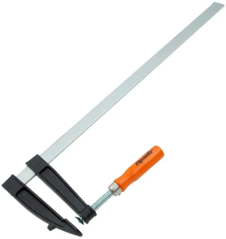 Sparta F gyorsszorító Különböző anyagból készült alkatrészek gyors rögzítésére tervezték feldolgozásuk és összeszerelésük során. Az egyik tartó mereven és nem mozgathatóan van felszerelve a sínre. A másik a fogantyú beállításához mozog, és egy csavaros szorítóval van felszerelve.A pofák műanyag betétekkel vannak felszerelve, hogy megvédjék a munkadarabokat a feldolgozás során fellépő sérülésektől.A mozgatható konzol csavarozása ergonomikus, felületkezelt fa markolattal van felszerelve a kényelmes működés érdekében.Ideális eszköz asztalosok számára.