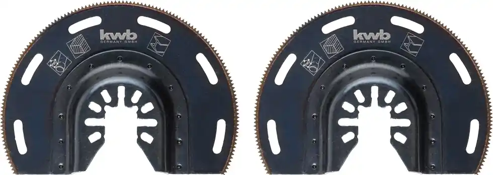 KWB AKKU TOP ENERGY SAVING 25% UNIVERSAL Bi-metal multi-szerszám félkör vágópenge színesfém, lemezacél, alu.profil, PVC, kemény, puha és szögelt fához 2 db 15 x 87 mm