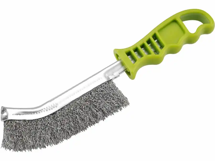 A legkedveltebb drótkefe típus.Többféle anyagú szálból készülhet.Ívelt vége a drótkefének segíti a nehezen hozzáférhető felületek tisztítását.Erős műanyag fogóval rendelkezikHajlított fejMűanyag nyél;Rozsdamentes acél sörte