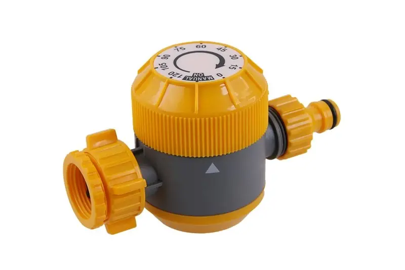 Rosa időzítő állítható időtartománnyal 0-120 percA kívánt öntözési idő egyszerű és egyértelmű beállítása egy forgatható „perccel” közvetlenül az időzítőnAdapter bemenet 1/2″ – 3/4″ belső menettel, kimenet gyorscsatlakozóhoz vagy 3/4″ külső menettelMinimális nyomás 70 kPa – maximális nyomás 550 kPa