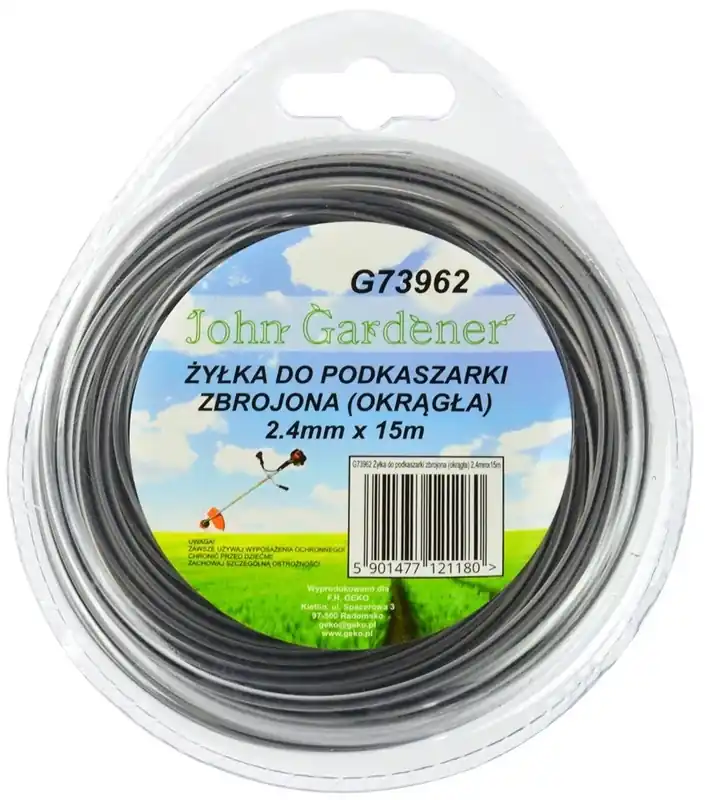 Geko John Gardener fűnyíró damil Fűkaszákhoz, szegélynyírókhozRendkívül tartós nylonból készült.A belső fűnyíró damilt egy külső műanyag réteg borítja.A kör alakú damilokat nagyobb szilárdság és lassabb kopás, ugyanakkor kevésbé hatékony vágási teljesítmény jellemzi.Ideális enyhe gyommentesítéshez, gyepszegélyekhez.