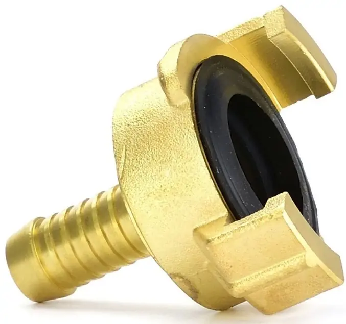 Körmös tömlő gyorscsatlakozó A kertészetben, iparban és építőiparban használatos szívó- és nyomótömlők gyors és egyszerű csatlakoztatására használható.A karmos csatlakozók ideálisak különböző átmérőjű tömlők csatlakoztatására, biztosítva a szilárd és szoros csatlakozást.A 40 mm-es távolságú karmok lehetővé teszik a csatlakozást bármely GEKA csatlakozóval360°-ban forgatható csatlakozóSárgarézből készült, ezért korrózióálló és tartós. Cserélhető olajálló NBR tömítéssel ellátva.