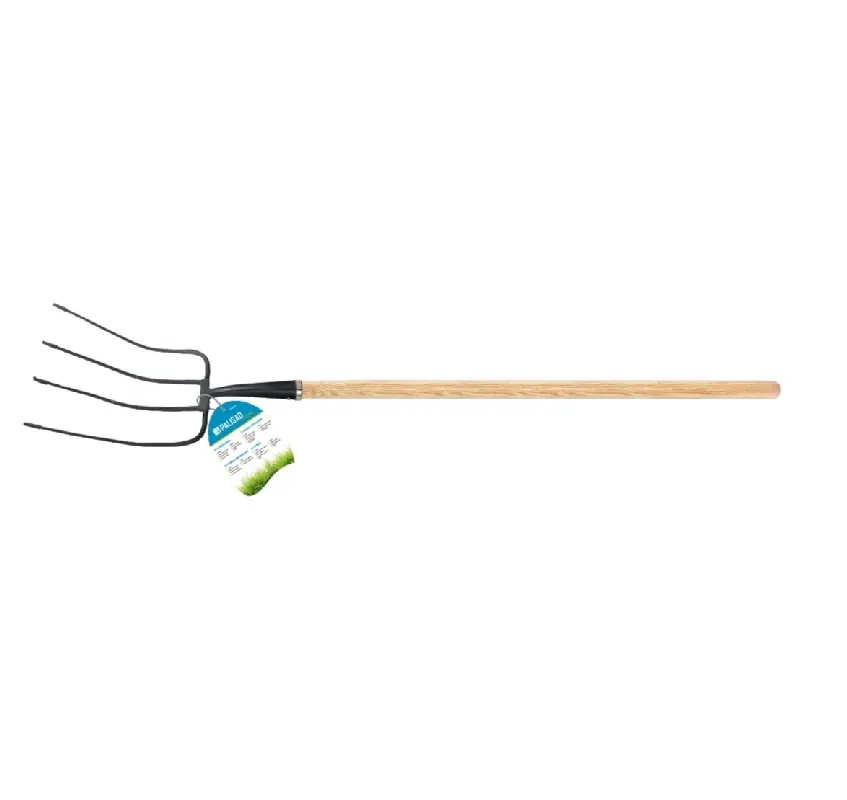 A négyágú széna villa kényelmes a trágya fellazításához és szórásához. A szerszám U8 szerszámacélból készül, amely hőkezelésen esett át a nagyobb szilárdság érdekében. A festés segít meghosszabbítani a villák élettartamát.
