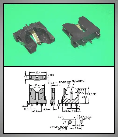 Elemtartó: CR2016, 2020, 2025, 2032 -höz