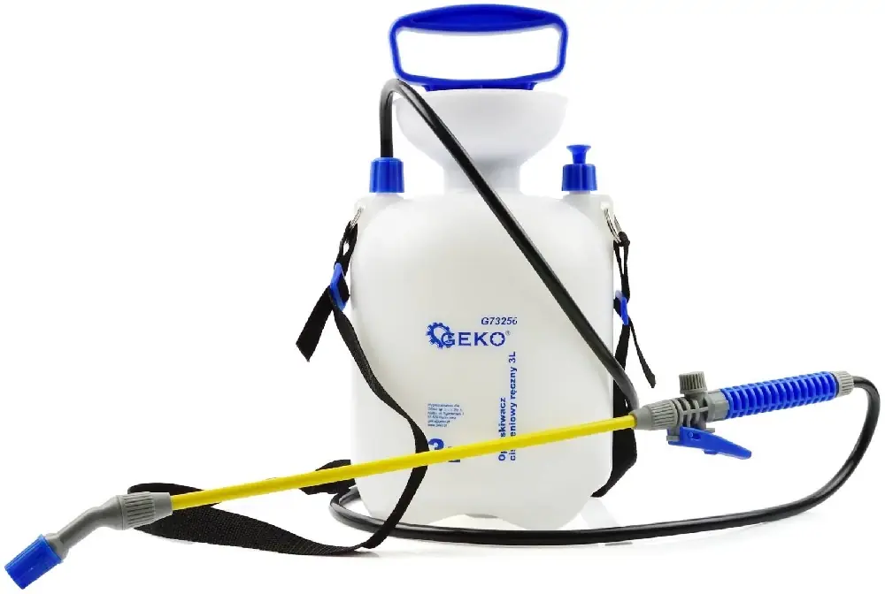 Geko kézi nyomópermetező 3 literes űrtartalom.Jól használható a növényvédelemben, betegségek megelőzésére és kártevők elleni védekezésben. Nagyobb házi kertben, gazdaságokban, ültetvényeken.Kényelmes hevederrel szállítva, amely lényegesen megkönnyíti a hosszabb munkavégzést.43 cm hosszú lándzsa. A reteszelő funkció folyamatos munkavégzést tesz lehetővé, ezzel megkímélve használóját.A tartály tartós polietilénből készült, a tömlő PVC-ből.Biztonsági szeleppel ellátva.Nagyon könnyű konstrukció.