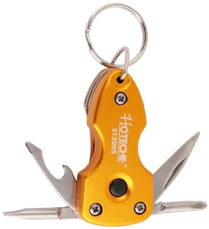 Hoteche 4 funkciós bicska LED világítással A Hoteche multifunkciós bicska olyan kés, amely több beépített eszközt és funkciót tartalmaz.Ezek a funkciók rendkívül praktikusak a mindennapi életben, kempingezés vagy túrázás alkalmával.Kompakt és könnyen hordozható.Magas minőségű alumínium ház.rozsdamentes acélból készültek a szerszámok.Funkciók:1db kés1db sörnyitó1 db csillagcsavarhúzó1 db lapos csavarhúzó