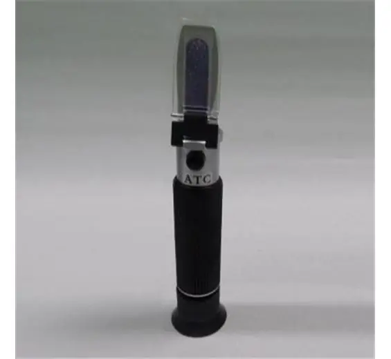 Alkohol szesz fokoló 0 – 80 % ig vv atc kézi refraktometer műszer. A refraktométerek segítségéve egyszerűen és olcsón elvégezheti különböző anyagok minőségének az ellenőrzését.A műszerben van egy beépített prizma és egy matt tető, amely a fényt 180 fokban szórja. A méréshez a prizma felületére kell pár csepp oldatot felvinni és a matt tetővel leszorítani. A beépített optikai távcső segítségével, fényforrás felé nézve megfigyelhetjük a számokkal ellátott skálán a sötét és világos határfelület elhelyezkedését, amelyből leolvasható a számbeli mért érték.A mérés egyszerű, könnyen kivitelezhető, akár a terepen is elvégezhető, ami a gyakorlatban nagyon hasznossá teszi a kézi refraktométereket.