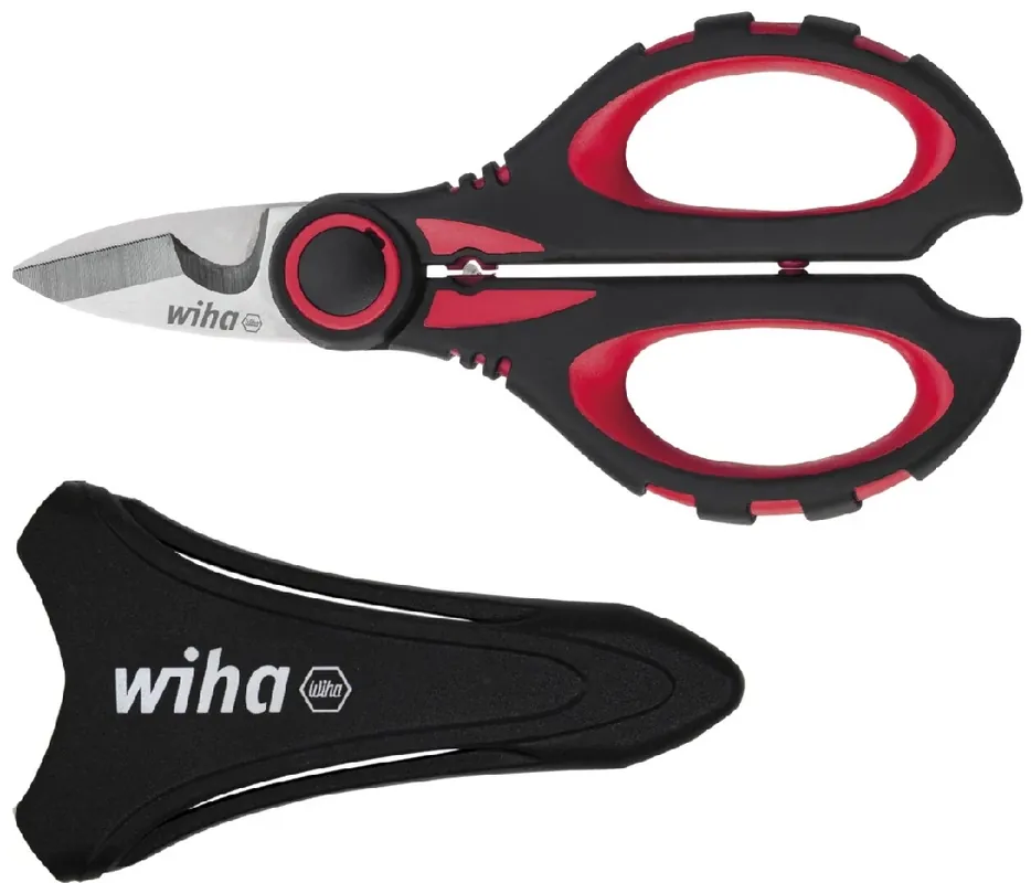 WIHA 41923 kábelvágó olló krimpelő funkcióval (Z71716006SB) A villanyszerelő olló a villanyszerelő tökéletes kísérője mobil használathoz. Az olló négy funkcióval bizonyítja univerzális használhatóságát: hosszméretre vágás, köpenycsupaszítás, kábelcsupaszítás és krimpelés.A nagy pengemélyedésnek és a finom mikrofogazásnak köszönhetően a kábelek könnyedén hosszméretre vághatók anélkül, hogy a kábel kicsúszna az ollóból.Lehetséges továbbá kábelek köpenycsupaszítása és kábelcsupaszítása is.Az ollócsukló mögött lévő mélyedés 1 – 5 mm² közötti érvéghüvelyek egyszerű krimpelésére szolgál.A praktikus védőtoknak és a tartócsipesznek köszönhetően kényelmesen rögzíthető az övön.