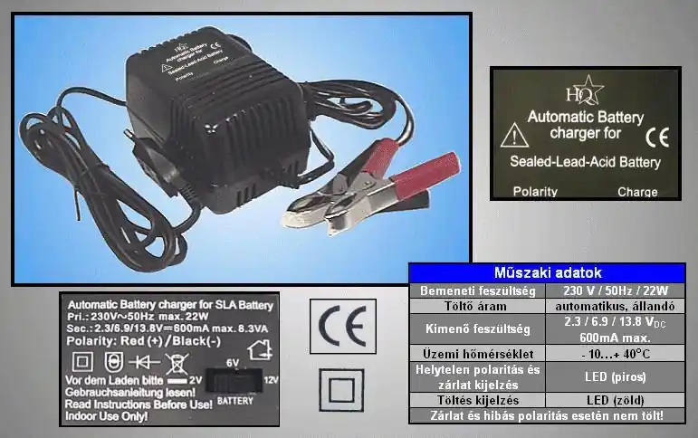 ZSELÉS AKKU töltő 2V, 6V, 12V